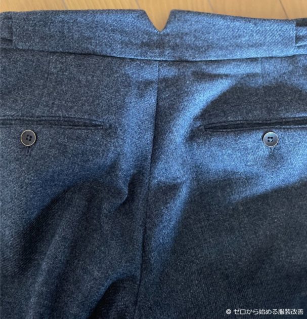 そのため、上で記載したとおり、サイドアジャスター仕様のスラックスが欲しければ、オーダーで仕立てることをオススメします。