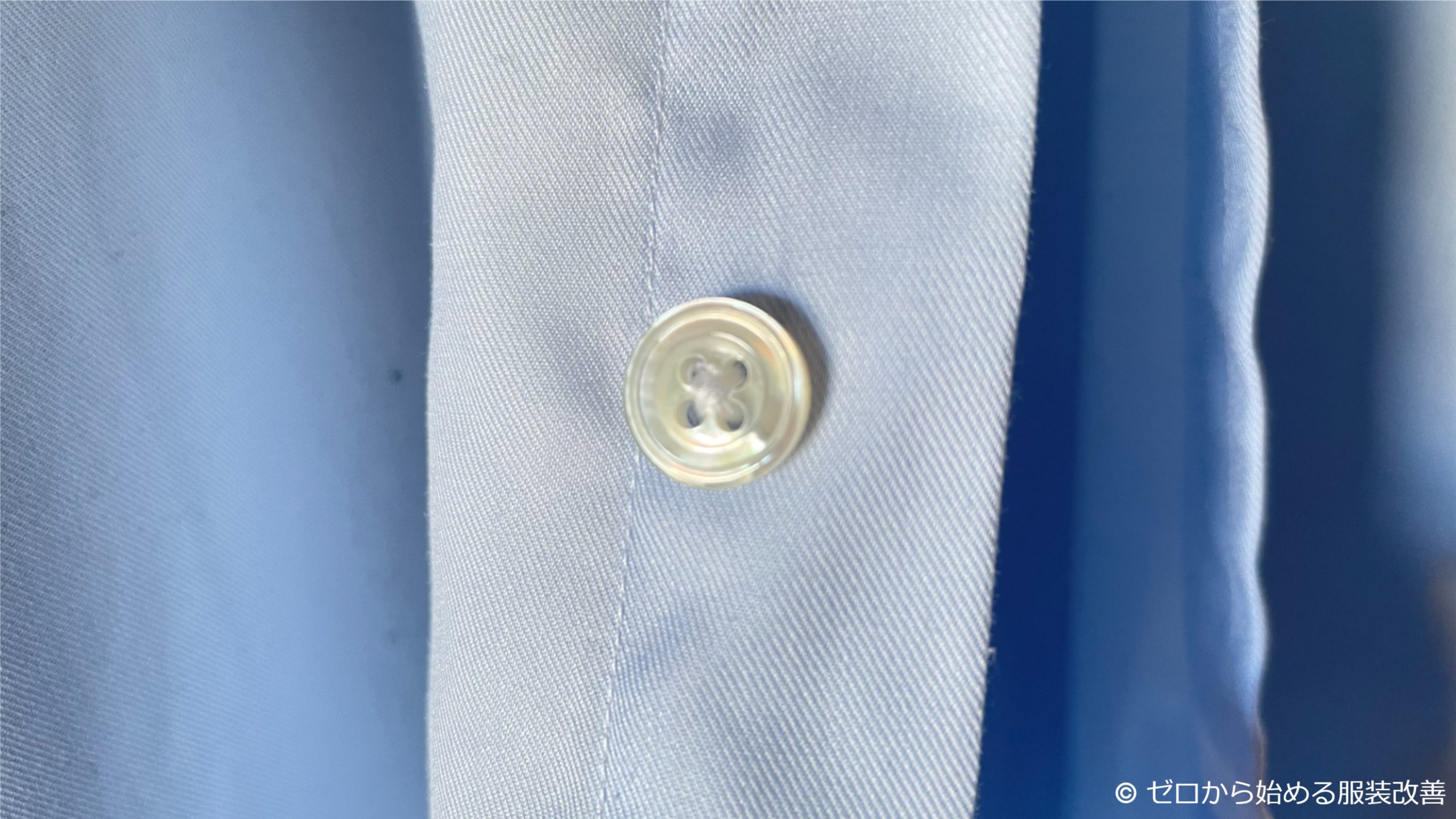 シャツオーダーの場合、500~1,000円くらいで貝ボタンに変えられるからお手頃だよね